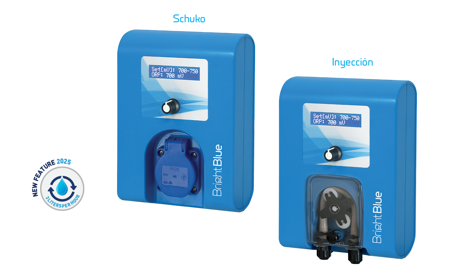 Sistema digital de medición y regulación de cloro (ORP), para piscinas privadas, públicas y comerciales. Dos opciones disponibles: Enchufe Schuko o Bomba de Inyección.